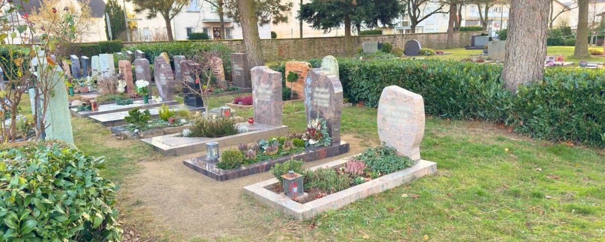 - Die Position der Grabstätte auf dem Friedhof kann nicht gewählt werden. Die Belegung erfolgt im jeweiligen Grabfeld der Reihe nach.