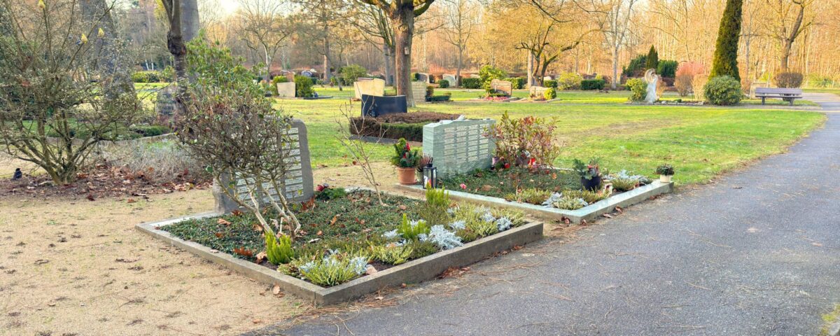 - Die Position der Grabstätte auf dem Friedhof kann nicht gewählt werden. Die Belegung erfolgt im jeweiligen Grabfeld der Reihe nach.