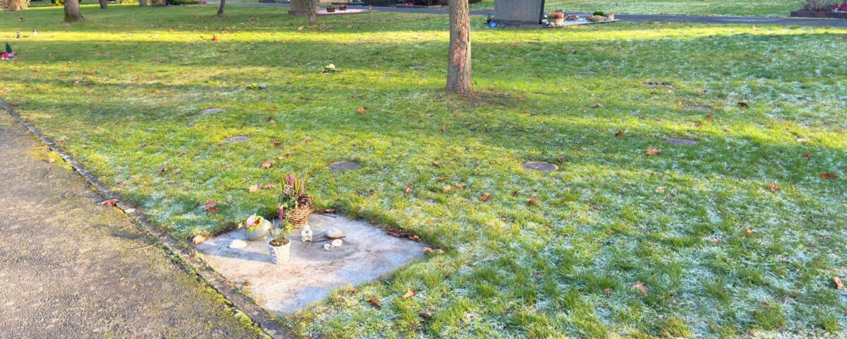 - Bei dieser Grabart handelt es sich um eine Urnenbeisetzung in einem pflegefreien Wiesengrab.